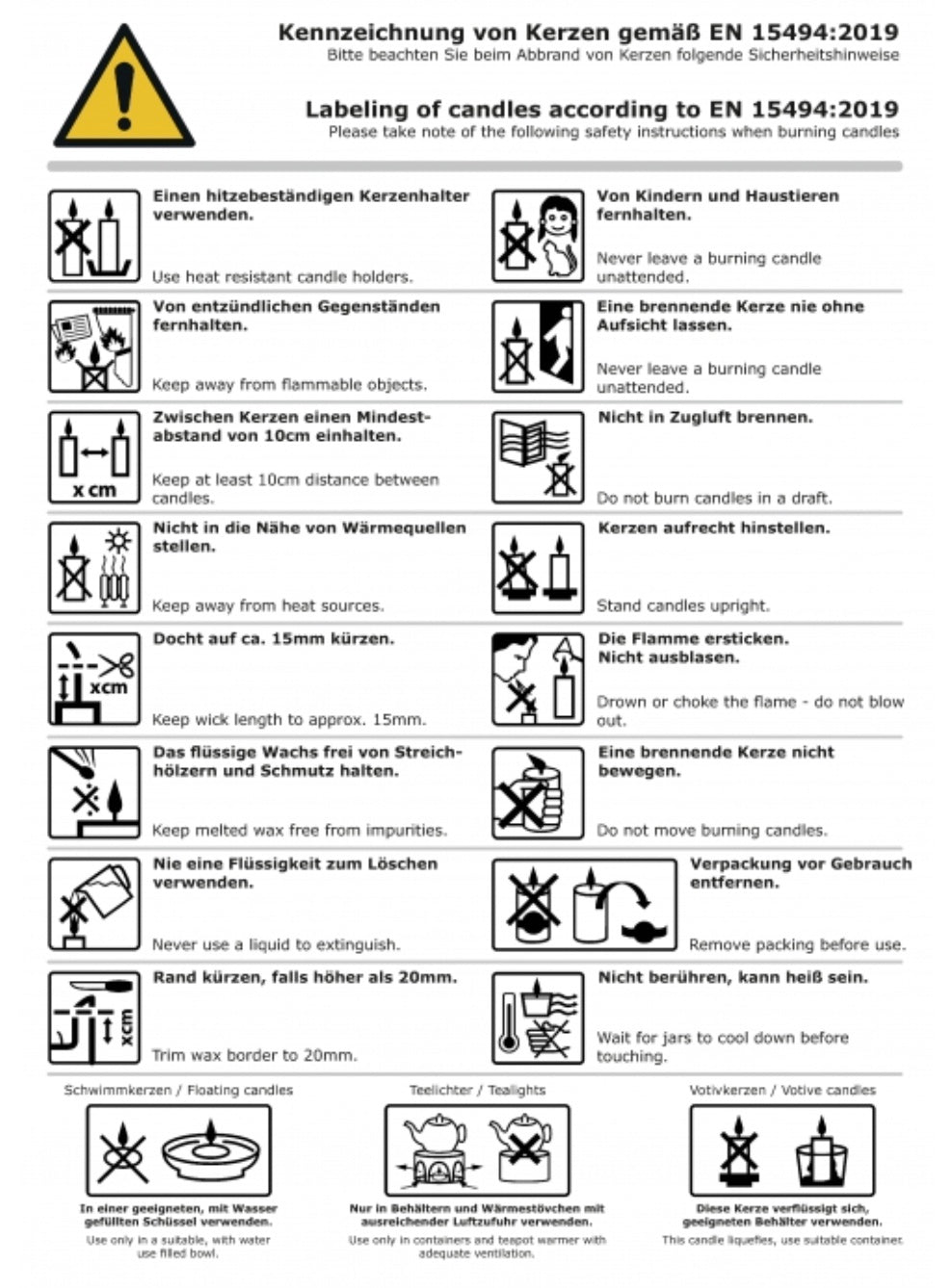 Kennzeichnung von Kerzen: EN 15494:2019